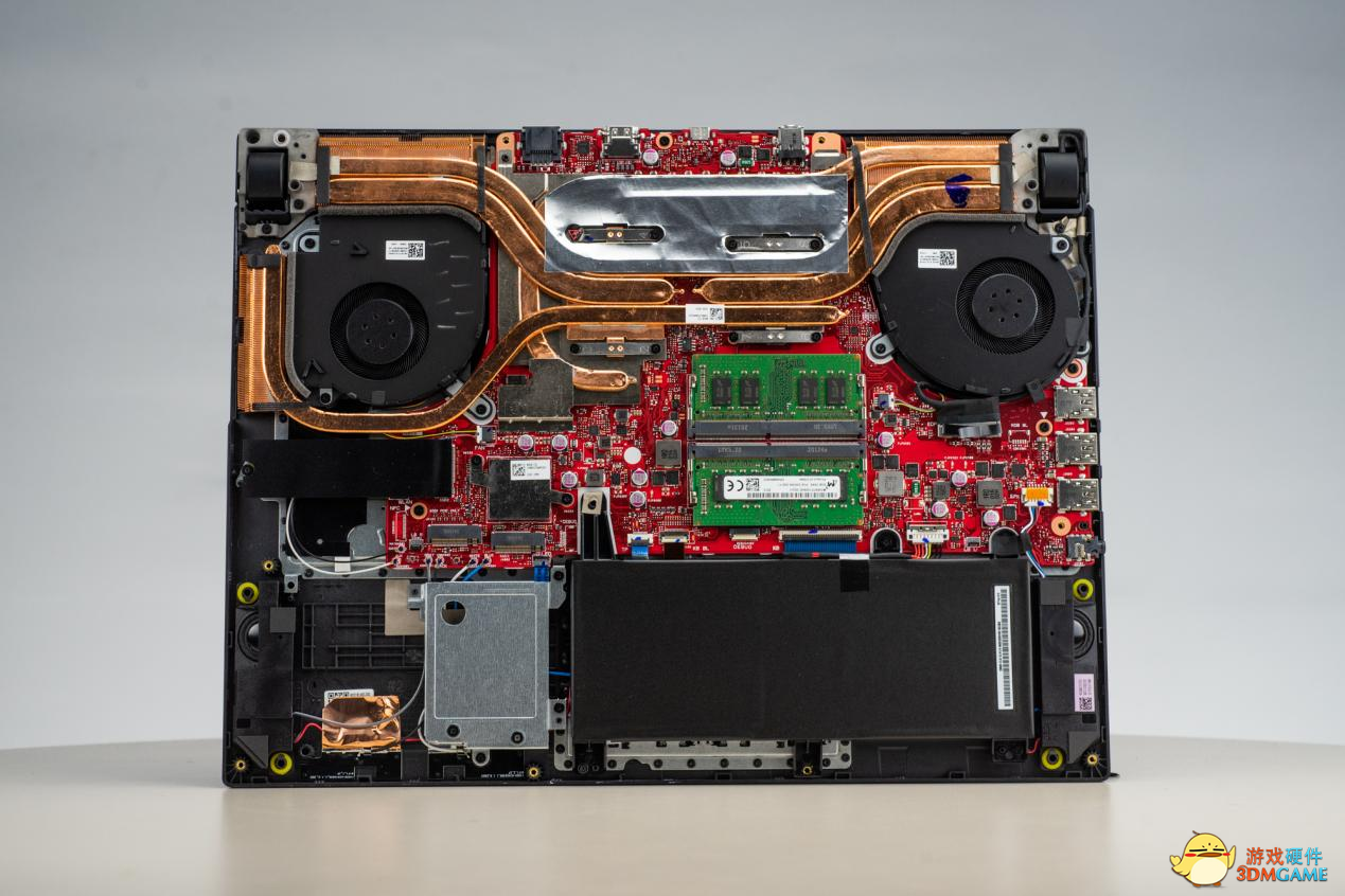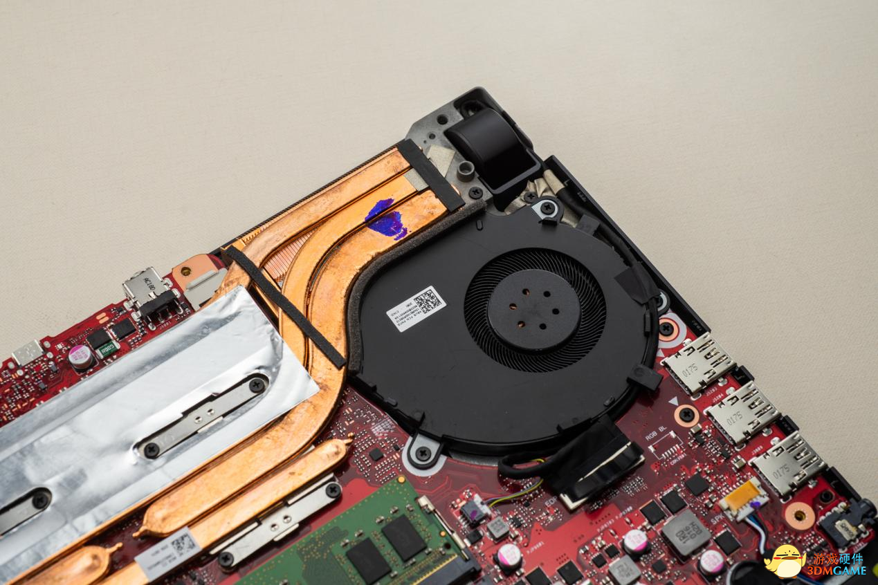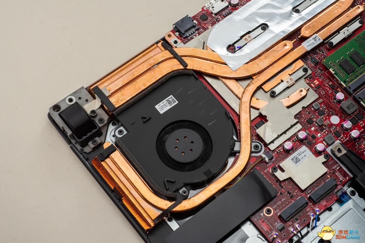 魔霸新锐在散热部分采用了三出风口设计,两个出风口在后部,一个在右侧,整机通过底部进气,这是一个比较常规的散热设计。