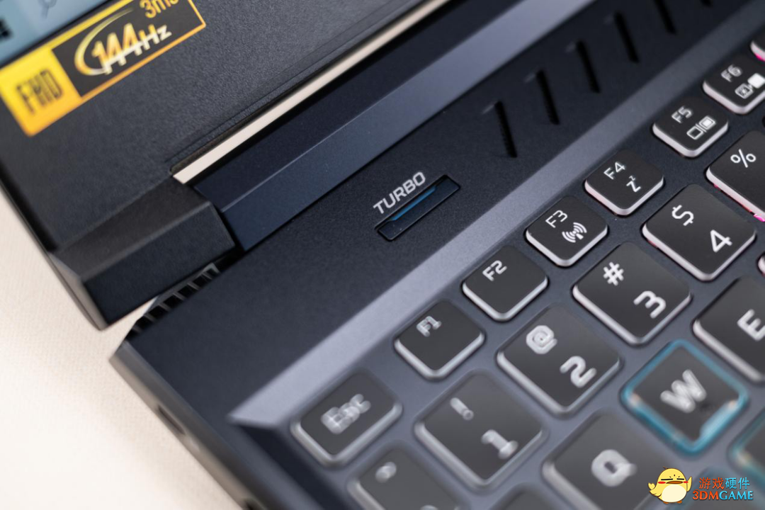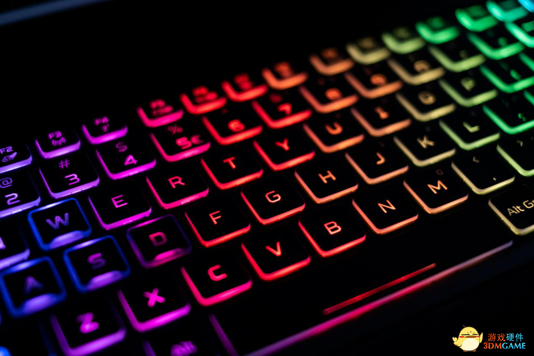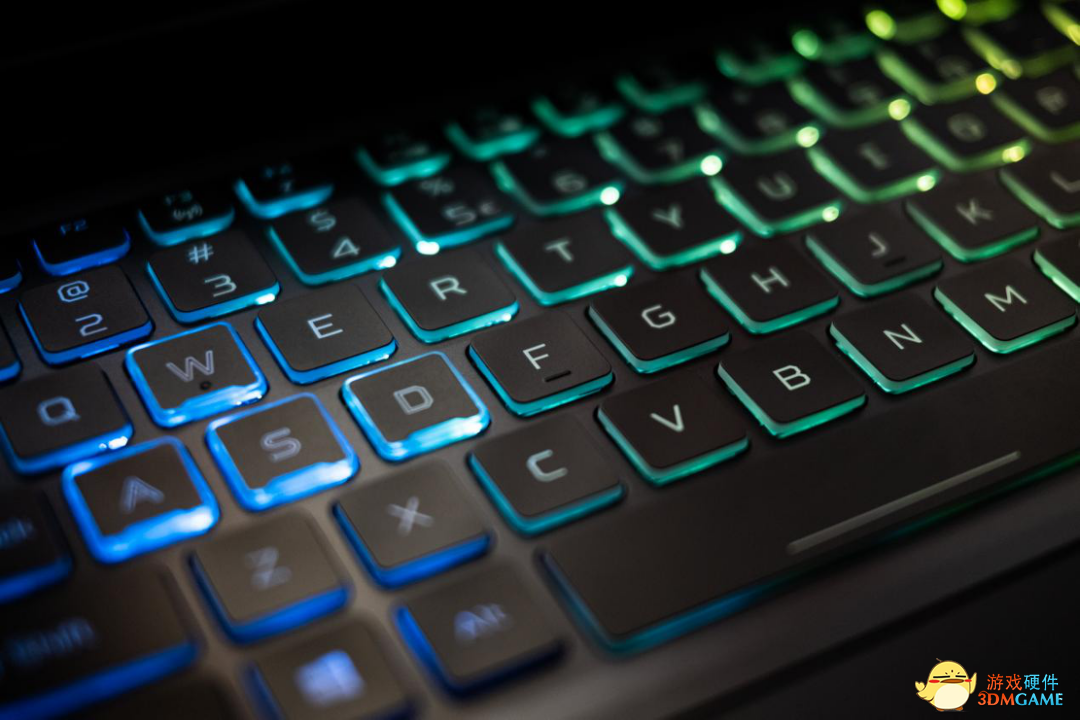 笔记本C面采用了不带小键盘的布局,支持单键RGB背光,内置软件还允许玩家调整多种不同的背光模式,可玩性还是非常高的。除了好看之外,这块键盘的手感也让人印象深刻。按键本身非常稳定,在快速敲击的时候回馈干脆利落,没有一丝的拖泥带水,手感上可以排在近期我们测试的游戏本中的前几名。