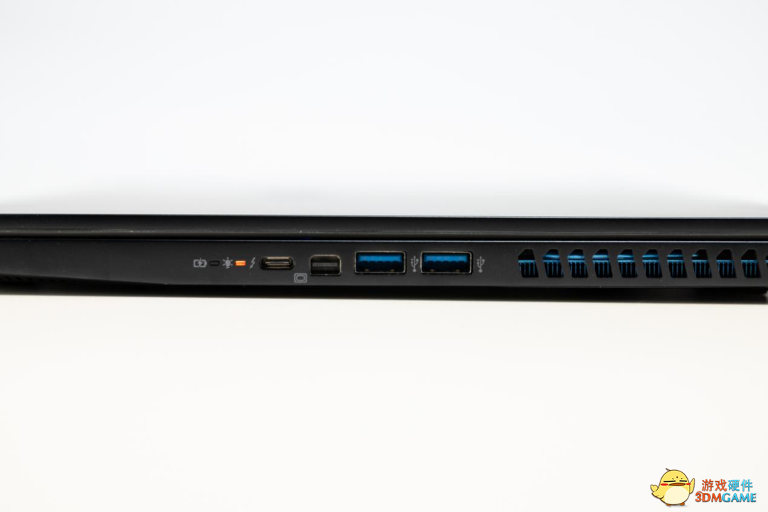 右侧部分为雷电3、miniDP、以及两个USB 3.2 Gen2接口。接口数量和布局都非常合理。