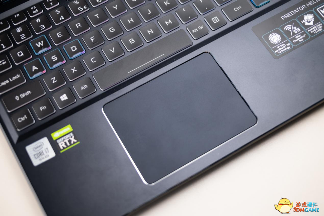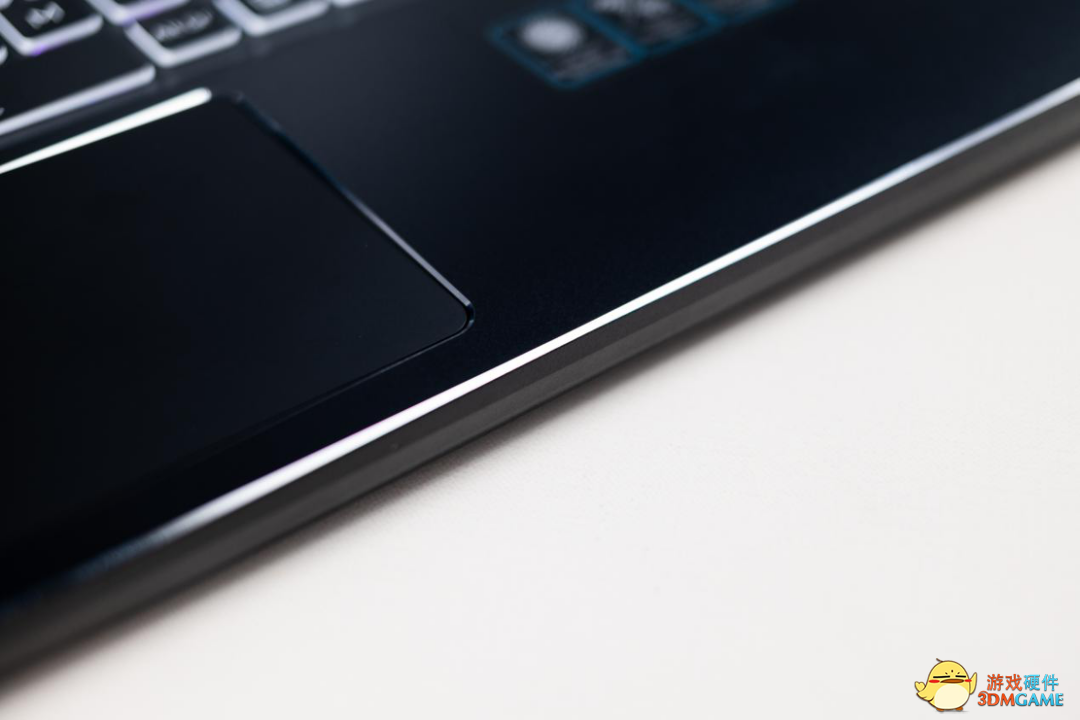键盘下方的触摸板面积中规中矩,在键盘位置偏下这样的设计中已经算是一个比较极限的尺寸。触摸板使用体验非常出色,支持Win10精准触控驱动,使用中非常跟手。另外值得一提的就是,C面正对用户的这一边,在边缘部分做了一个比较宽的倒角设计,就是这一点小小的设计,让我们在体验这款产品长时间游戏和打字的场景下舒适度非常出色。这样一个小小的斜坡,让笔记本的边缘不再硌手,对于长时间使用笔记本的人来说,这样一个小小的设计给人带来了非常大的幸福感。