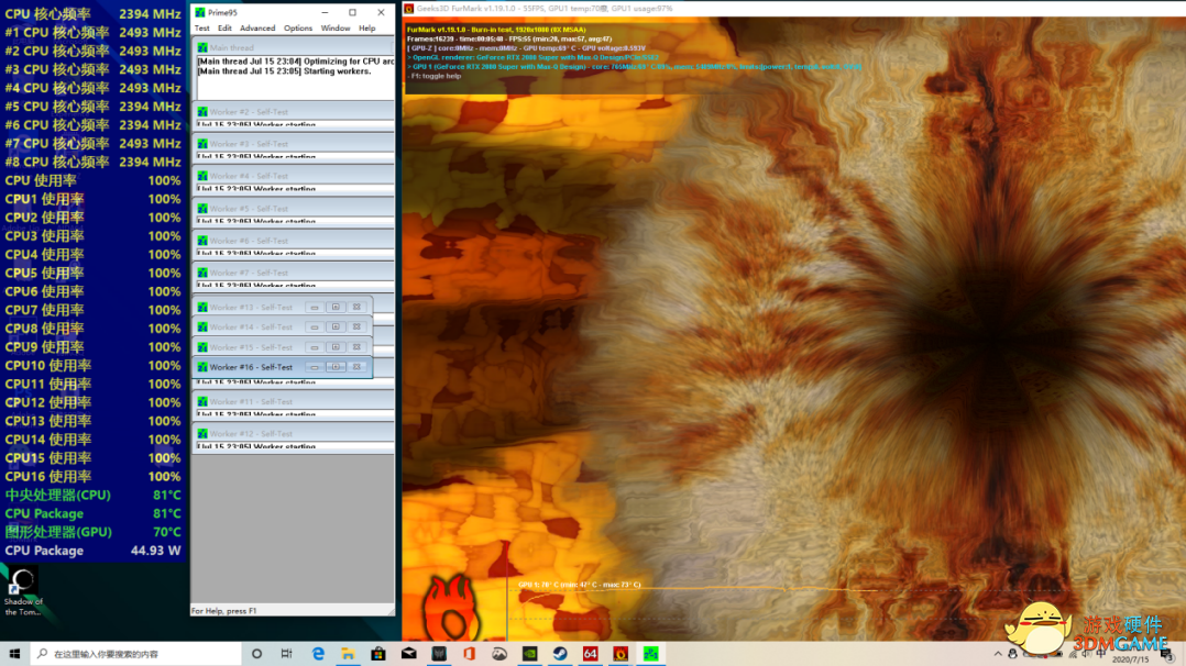 对于游戏本而言,硬件只保证了它性能的上限,而散热设计的好坏则直接影响了笔记本的性能发挥。宏碁的这两款笔记本在散热上都下了不少功夫。掠夺者刀锋500采用了三风扇五热管的散热模组,风扇叶片采用了仿生设计,厚度仅0.1mm,并且采用了金属材质,优化后的风扇能够有效降低噪音并且提升散热效率;掠夺者战斧300这边则是采用了双风扇三热管的散热系统。下面我们使用FurMark以及Prime 95进行双烤测试,来看看他们的实际表现。