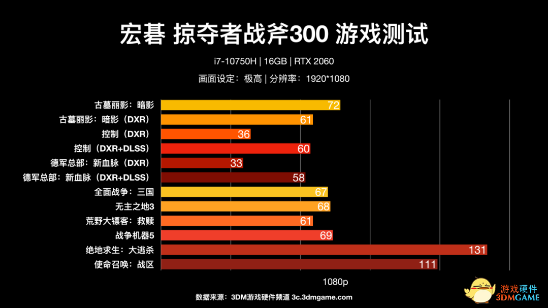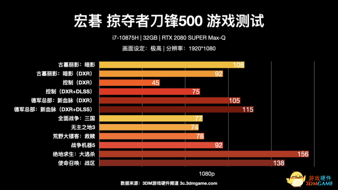 从结果上可以看到,尽管两款笔记本的配置差距不小,但因为笔记本本身的屏幕仅有1080p,所以最终落实到帧数上来看,哪怕是搭载RTX 2060的掠夺者战斧300也能够保证多数游戏跑在60帧以上,所以对于玩家们而言都能有非常流畅的体验。对于掠夺者刀锋500来说,得益于G-Sync屏幕的加持,多出来的游戏帧数也并不会被浪费,高刷新率的屏幕可以提供更多的游戏信息,这对于FPS游戏来说也会给你带来不少优势。