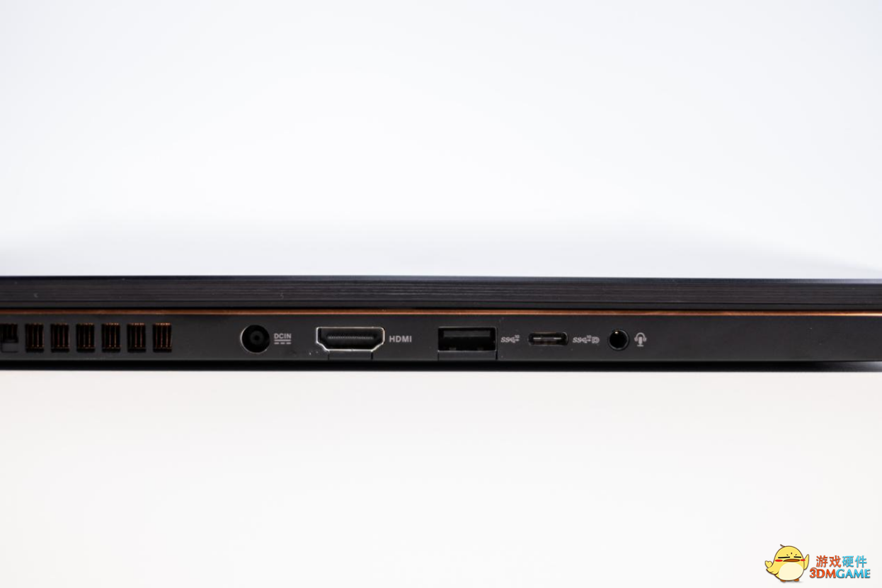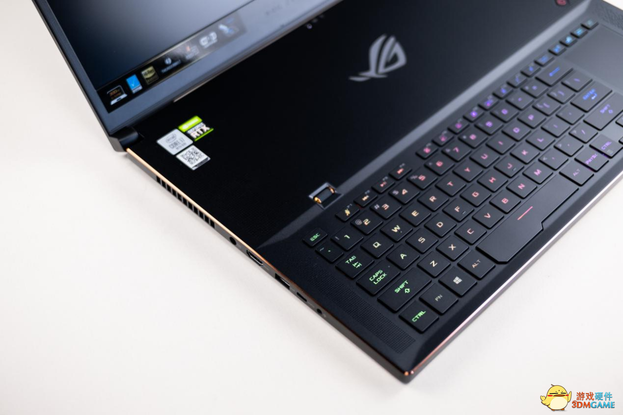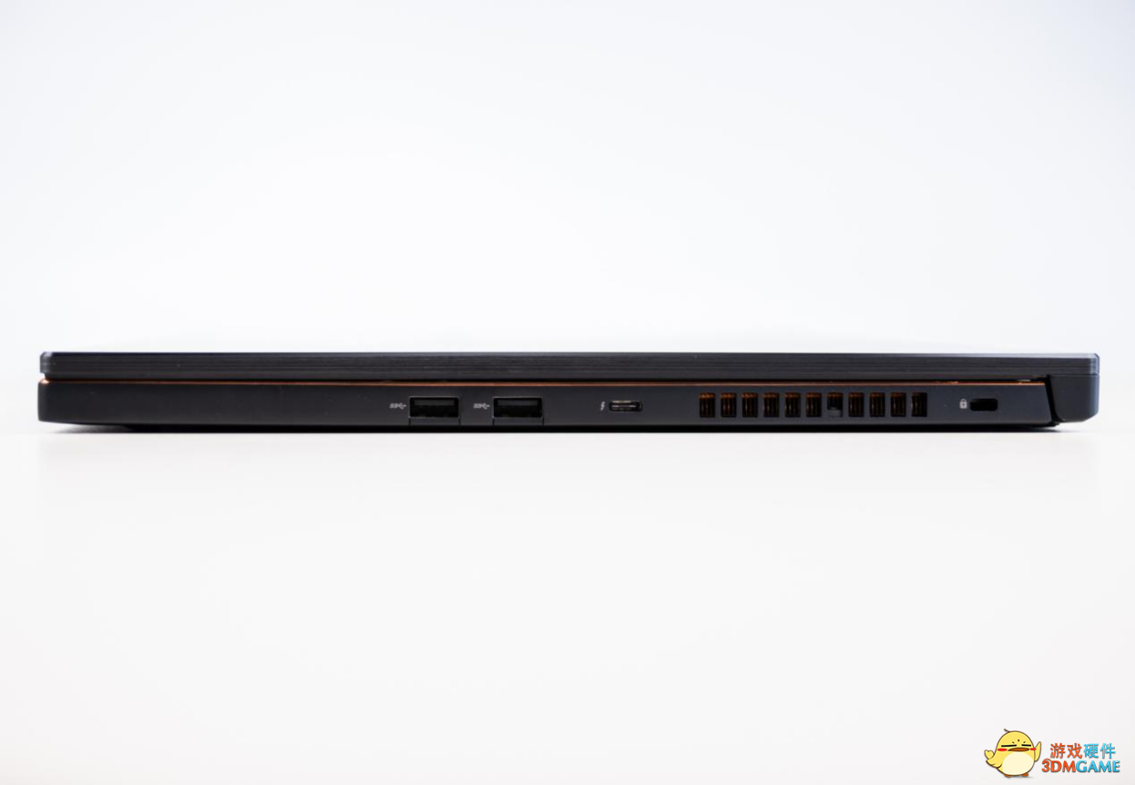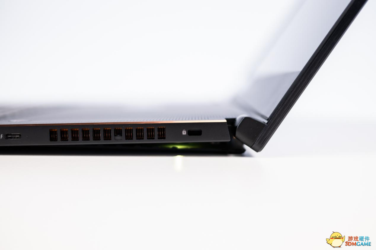接口部分,ROG 冰刃4 Plus with RTX 2070 SUPER版本和顶配型号没有区别,右侧提供两个USB 3.2 Gen 1和雷电3接口。左侧为电源、HDMI 2.0b、USB 3.2 Gen2、支持DP1.4输出的Type-C USB 3.2 Gen2以及3.5mm音频麦克风接口。在十代酷睿机型上,雷电3接口终于得到了补全也是一个非常好的消息。