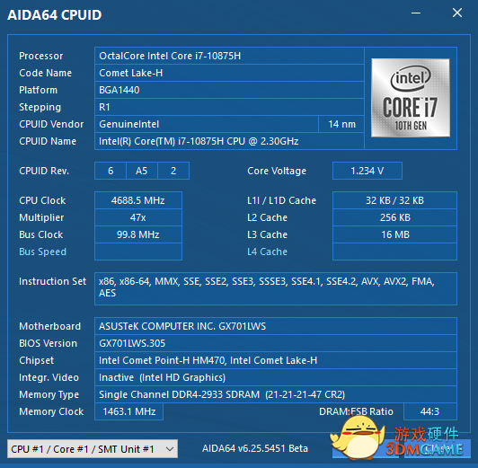 首先这款ROG 冰刃 4 Plus搭载的是Intel Core i7-10875H这颗处理器拥有8核心16线程的配置,基础频率2.3GHz单核爱最大睿频可到5.1GHz,三缓容量16MB,TDP维持在45W不变。整体规格参数都要比主流的i7-10750H更高,相比之下在多线程部分的性能提升在35%以上,是目前移动端非常强悍的一颗处理器。
