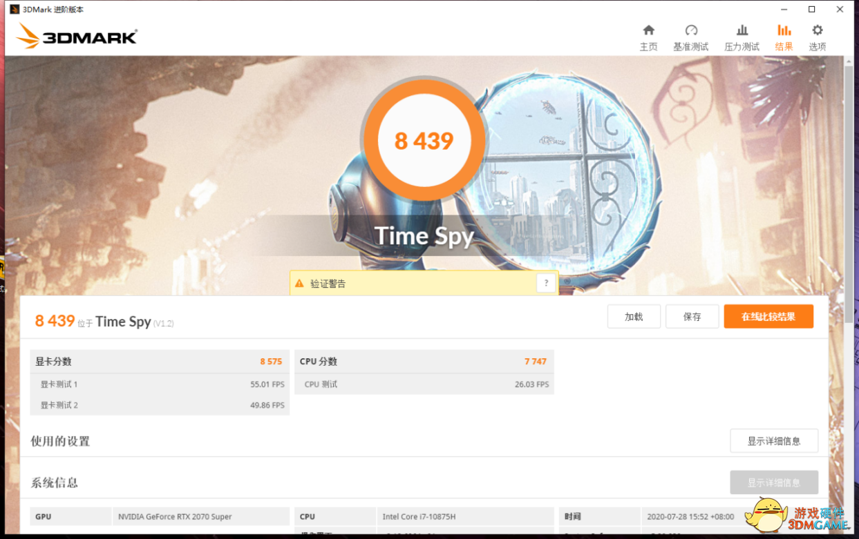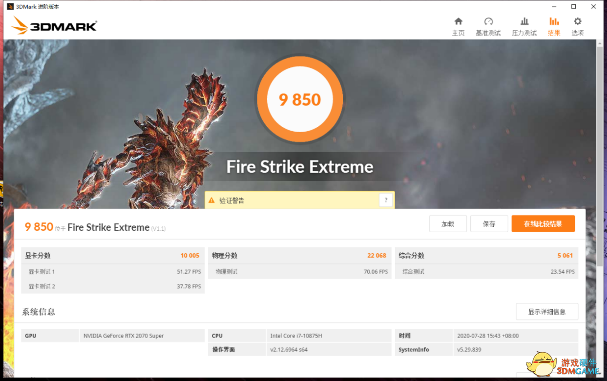 首先来看3DMark部分的跑分测试,我们直接用上次测试的RTX 2080 SUPER Max-Q的成绩作为对比。