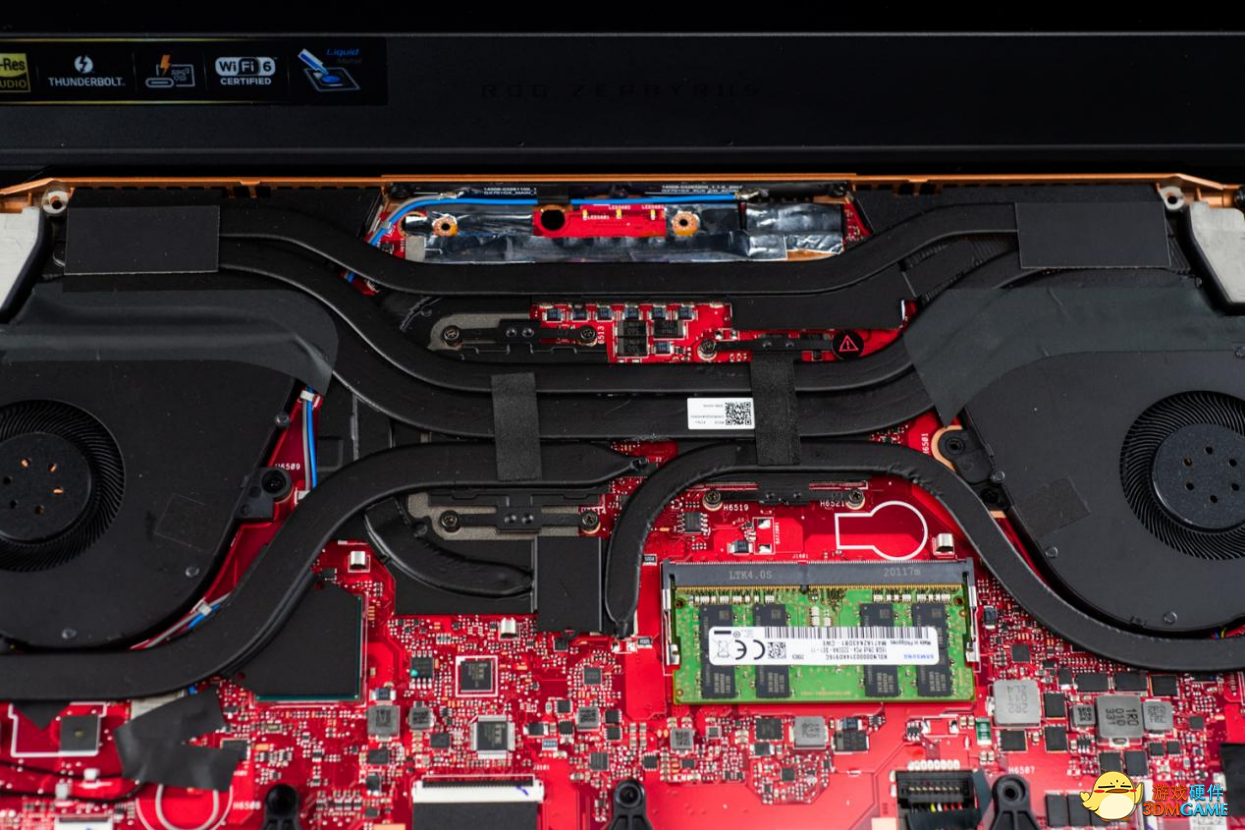 我们今天测试的ROG 冰刃4 Plus的内部设计和之前测试的高配型号没有区别,同样采用的是6热管双风扇的配置,CPU和GPU均分配到3根热管覆盖,并且CPU部分也采用了原厂液金导热材料。像板载内存以及其他部分也保持了相同规格,大家如果有兴趣可以跳转到之前的文章查看具体情况,我们今天就不再赘述。「点击进入」