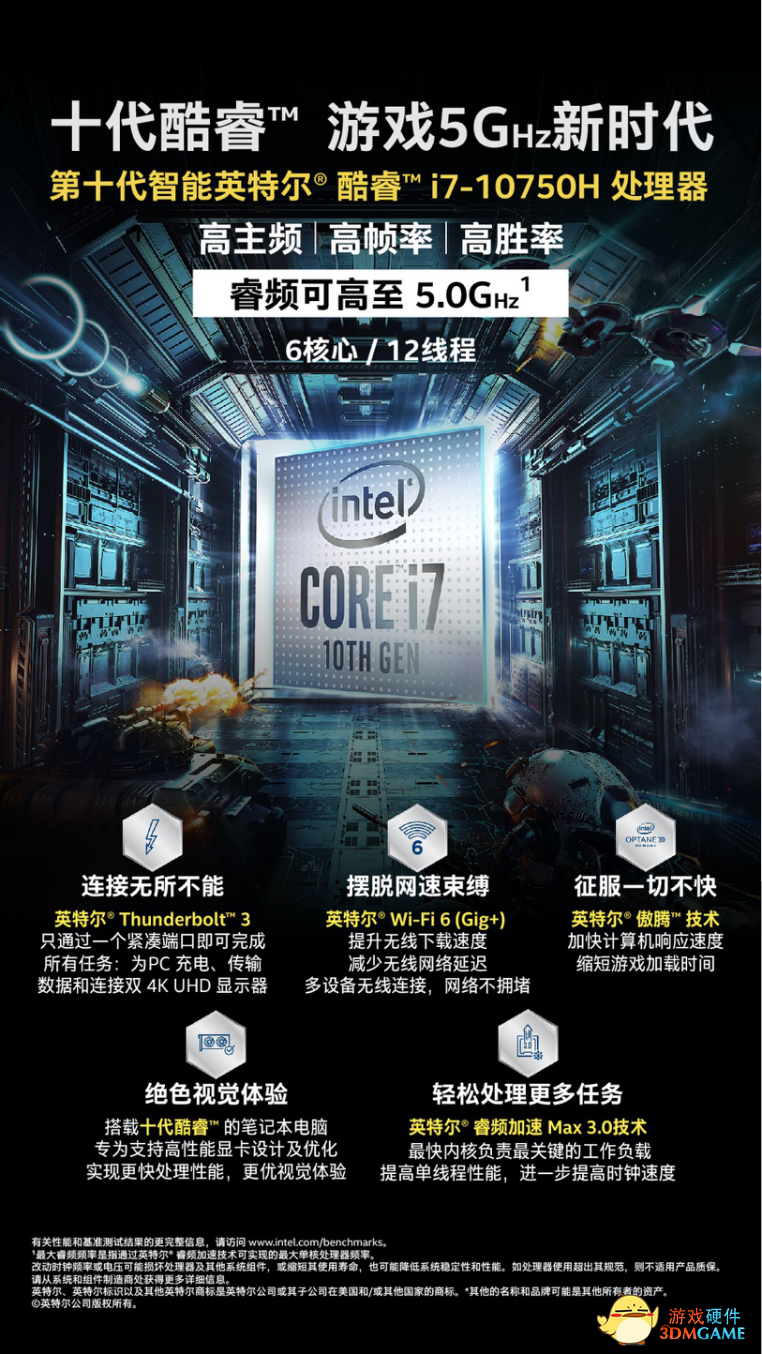 另外,十代酷睿处理器首发革命性的WI-FI 6 AX201(Gig+)技术,可以使直播更流畅,下载速率更高,游戏响应更快延迟更稳定。并且在无线VR的领域里,WIFI 6更是推动无线VR技术的主要功能。可以使VR头显在没有线材的束缚下接收电脑传输的清晰画面,并且解决了无线延迟的问题。