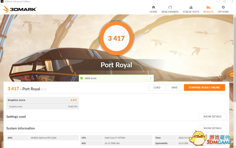 Time Spy最终综合得分是6003分,Fire Strike综合得分是14031分而Port Royal的综合得分是3417分,这个成绩对于移动版2060来说已经是相当不错了。