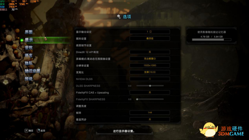 《怪物猎人世界》相对而言比较吃CPU的性能,而我们在游戏中将画质调至最顶级后,在村庄中和在战斗中它的帧率都在60帧左右,达到了流畅体验的标准。