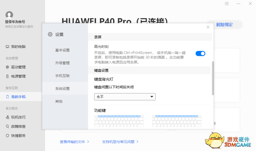 在游戏体验上,荣耀猎人游戏本V700几乎可以胜任玩家的基本需求。但是,在现今的游戏本领域中,能达到这一标准的游戏本数不胜数,如果荣耀猎人游戏本想在这些游戏本中脱颖而出,后发制人的话,我们必须有着选择它的理由。而我作为一个华为以及华为荣耀系列的资深粉丝而言,除了它的性能外,还有它对于华为以及华为荣耀系列手机的便利功能也是必不可少的。