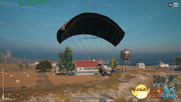 进游戏后在跳伞时从高处看,植被,建筑,公路纹路清晰可见,光泽反映细致,渲染物品多,颜色清新,流畅没有卡顿感,不存在落地蛋糕房的现象(托了内置DDD4 2400 16G内存条和三星SM961 NVMe SSD 1T固态硬盘的福)。