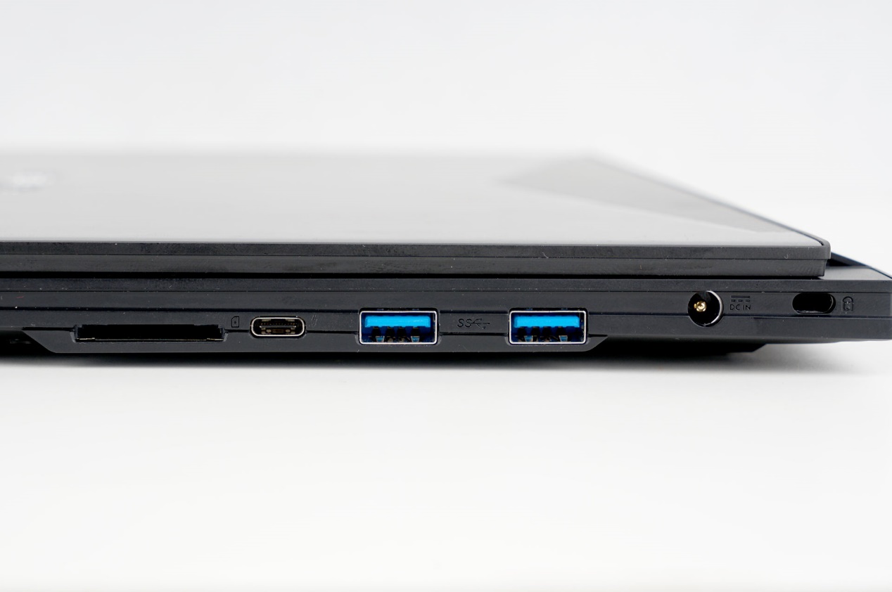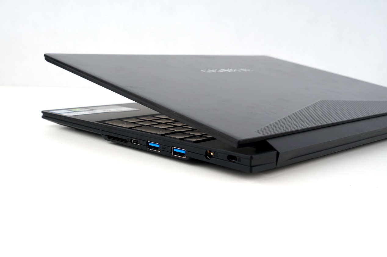 接口方面,技嘉Aero 15X左侧提供了RJ45网线接口,一个USB3.0接口,一个HDMI输出接口,USB Type-C接口以及3.5mm耳机接口,右侧提供了一个SD卡槽、两个USB3.0接口以及雷电3接口,这样的规格基本可以满足所有的日常需求了,无论是会议工作还是游戏生活需要,都可以通过上面的接口实现。