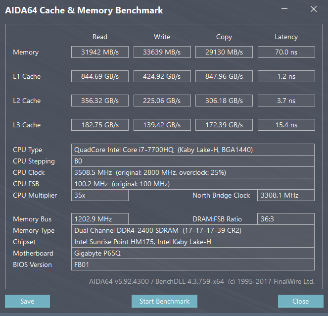 从规格上看,i7-7700HQ虽不比桌面级同型号产品,但i7-7700HQ拥有更低的功耗及发热量,作为一款高端游戏本十分青睐的CPU,笔者自然也要探究一下这款CPU的实力。