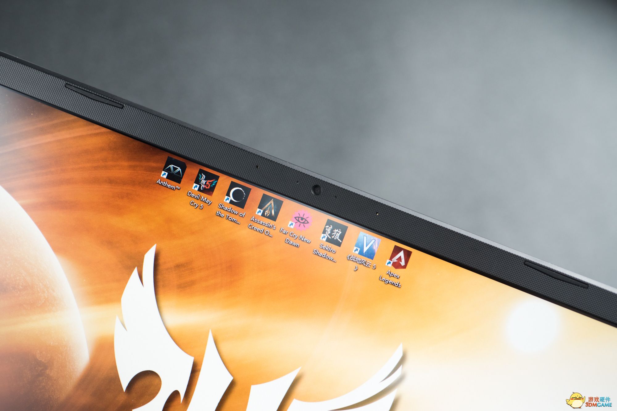 B面屏幕部分采用了窄边框设计,左右两边宽度仅有6.5mm,额头稍宽但也让摄像头等硬件得以保留在一个正常的位置上。这是一块IPS面板,可视角度不必担心,规格为1080p@120Hz刷新率。这样的参数在飞行堡垒7000元左右的售价横向来看,也是比较少见的,这也是我们认为这款产品性价比高的第一点。
