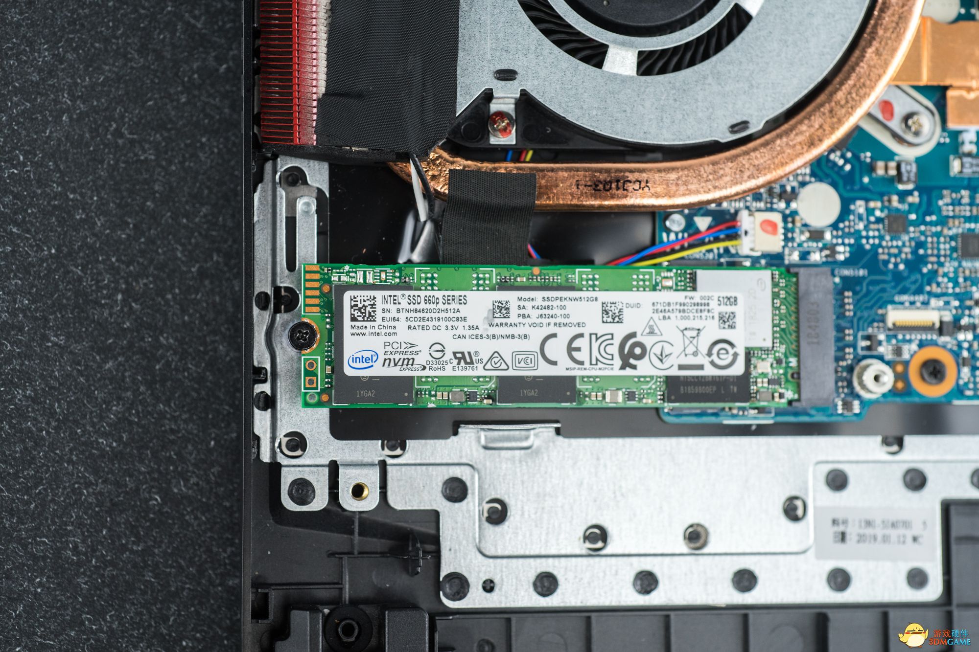 我们这款高配型号的飞行堡垒7搭载了512GB的SSD,型号为Intel 660P,这是一款QLC颗粒的硬盘,支持NVMe协议。