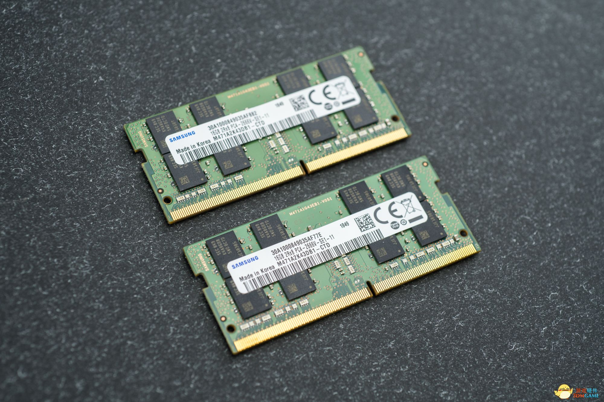 主板上有两个内存插槽,我们这台搭载了两条三星16GB 2666MHz规格的DDR4内存。