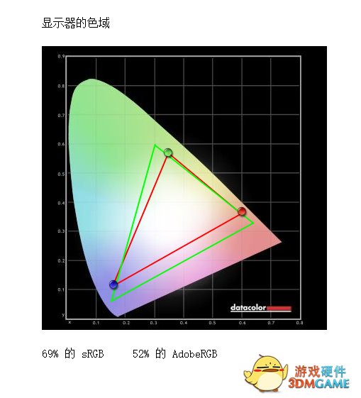 实测这块屏幕覆盖了69%的sRGB色域,没做到100% sRGB色域有些小小的遗憾,让它不太能胜任对色彩要求比较高的工作。