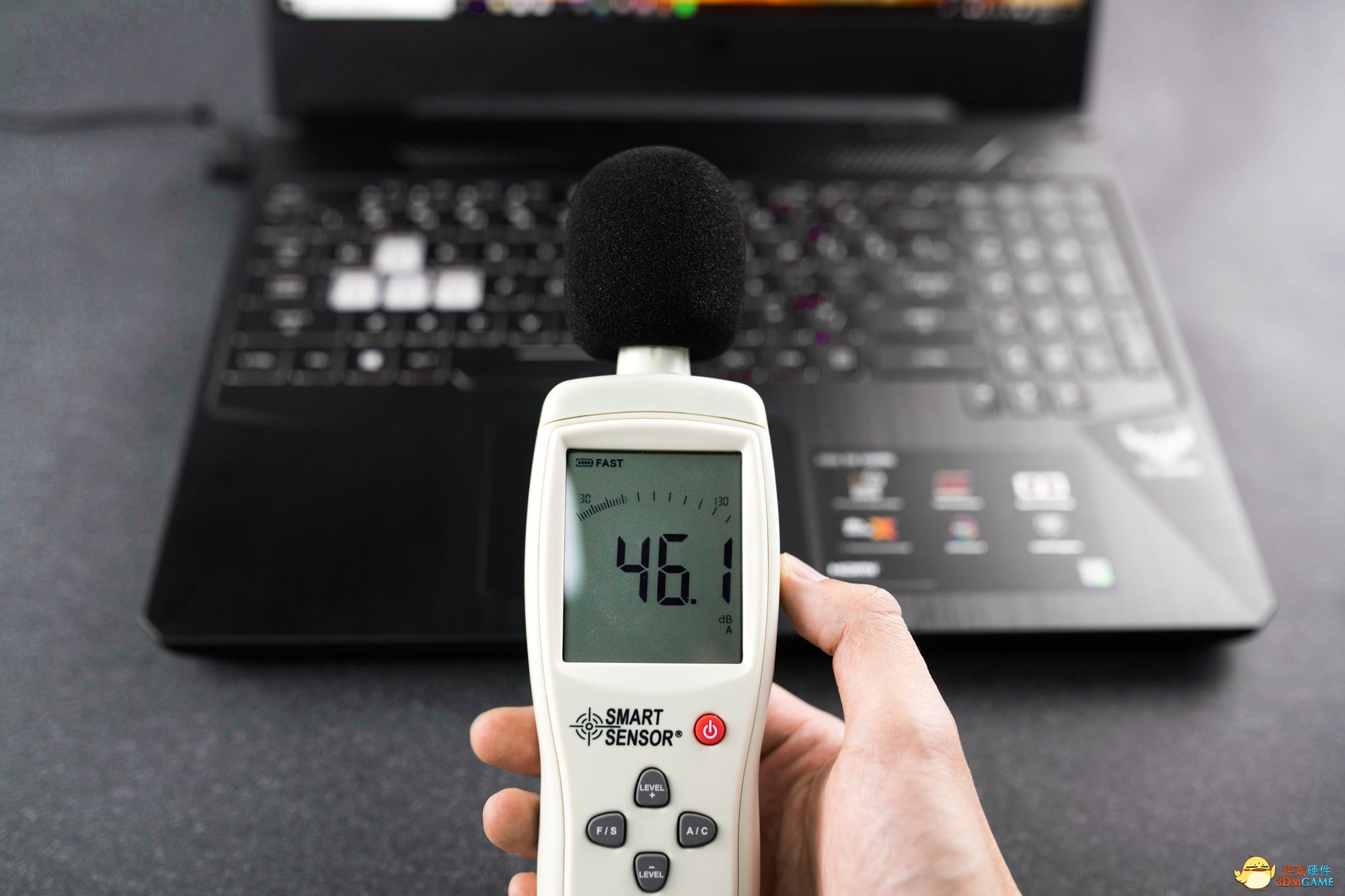 拷机中风扇满载的情况下,声音也没有夸张的大,在我们室内噪音30分贝的情况下,当拷机时测量一共也只有46分贝,这个水平在我们测试过的众多游戏本当中算是中上水平。