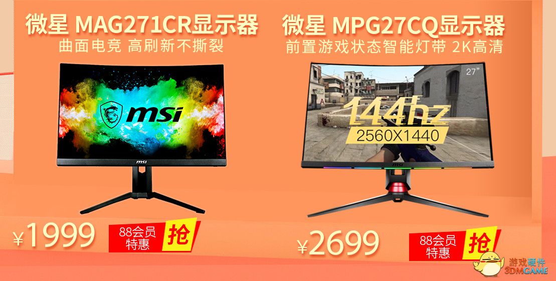 微星新品显示器PAG301CR也正在以优惠价回馈于用户,这款显示器提供21:9超宽曲面和200Hz刷新率。另外微星MAG271CR和MPG27CQ同样参与优惠活动,并且享受微星提供的3年到府星服务,有任何故障均可呼叫上门服务。
