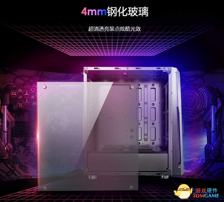 侧面盖板采用了4mm厚度的钢化玻璃,通透性好,板材厚度0.6mm,强度高,方便玩家展示整机内部的硬件和灯效!除此之外它还能支持335mm的长显卡和165mm高的CPU散热器,兼容性十分的强!
