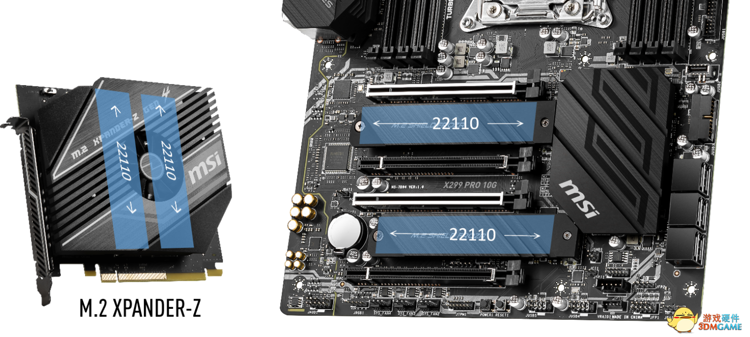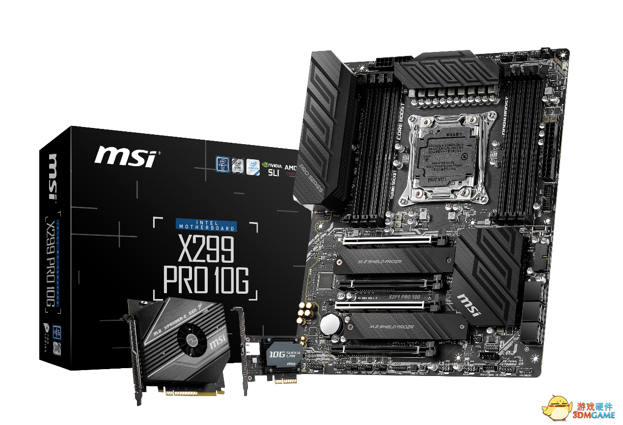 X299 PRO 10G主板为满足专业工作流程而设计,可满足包括散热,网络,数据传输和存储等多项要求。 MSI扩展的PWM散热器和热管设计可确保高端处理器在较低的温度下全速运行。 两个M.2冰霜散热铠甲提供优质的热保护,并避免节流以保持优质性能。 X299 PRO 10G还配备了多种配件, M.2 XPANDER-Z附加卡扩展了2个带有散热器和风扇的M.2插槽,以提供更多存储空间。