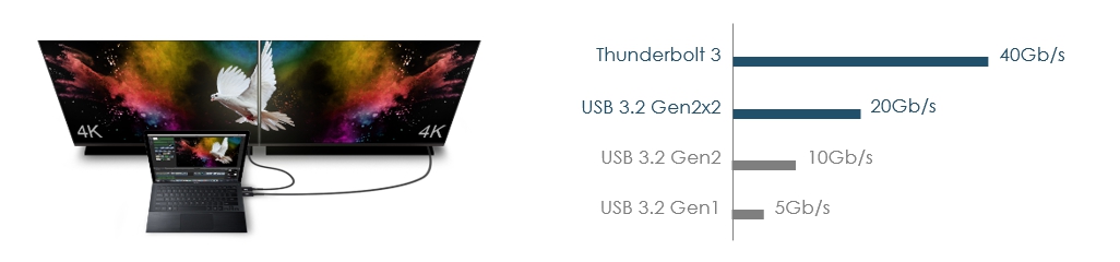 同时配备了更强的存储扩展规格,微星CREATOR X299主板自带3个M.2插槽和4个带有M.2 XPANDER-AERO的M.2插槽以及一个微星的附加附件卡,提供多达19个USB接口和U.2接口,板载ASM3242高速USB3.2 Gen2x2控制器提供USB 20G接口,将USB传输速度提升到20Gb/s,并提供雷电3接口(40Gb/s),满足数字内容创作的大数据传输需求。