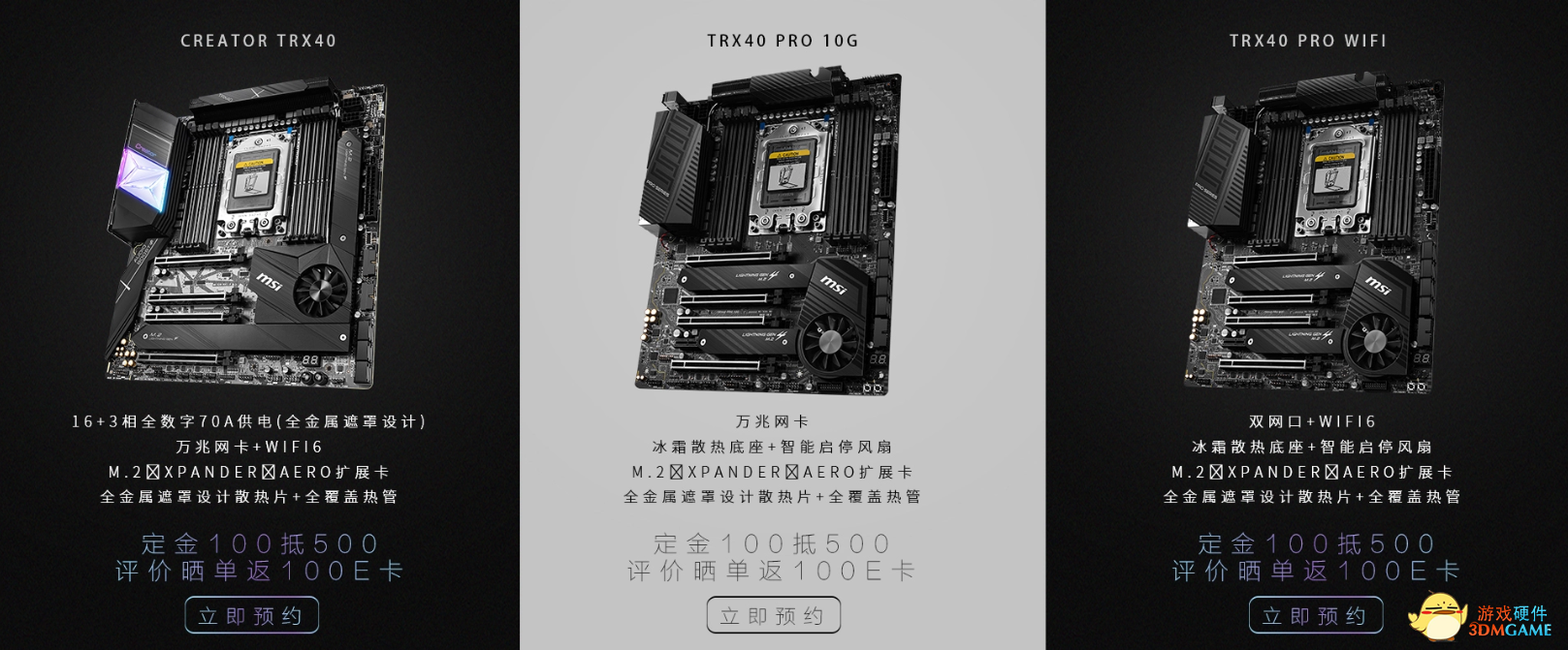 当然好马也要配好鞍,微星科技近期针对第三代锐龙线程撕裂者处理器推出了多款TRX40系列主板,分别有:微星 CREATOR TRX40、微星 TRX40 PRO 10G、微星TRX40 PRO WIFI等三款产品,分别面向不同的专业用户群体。