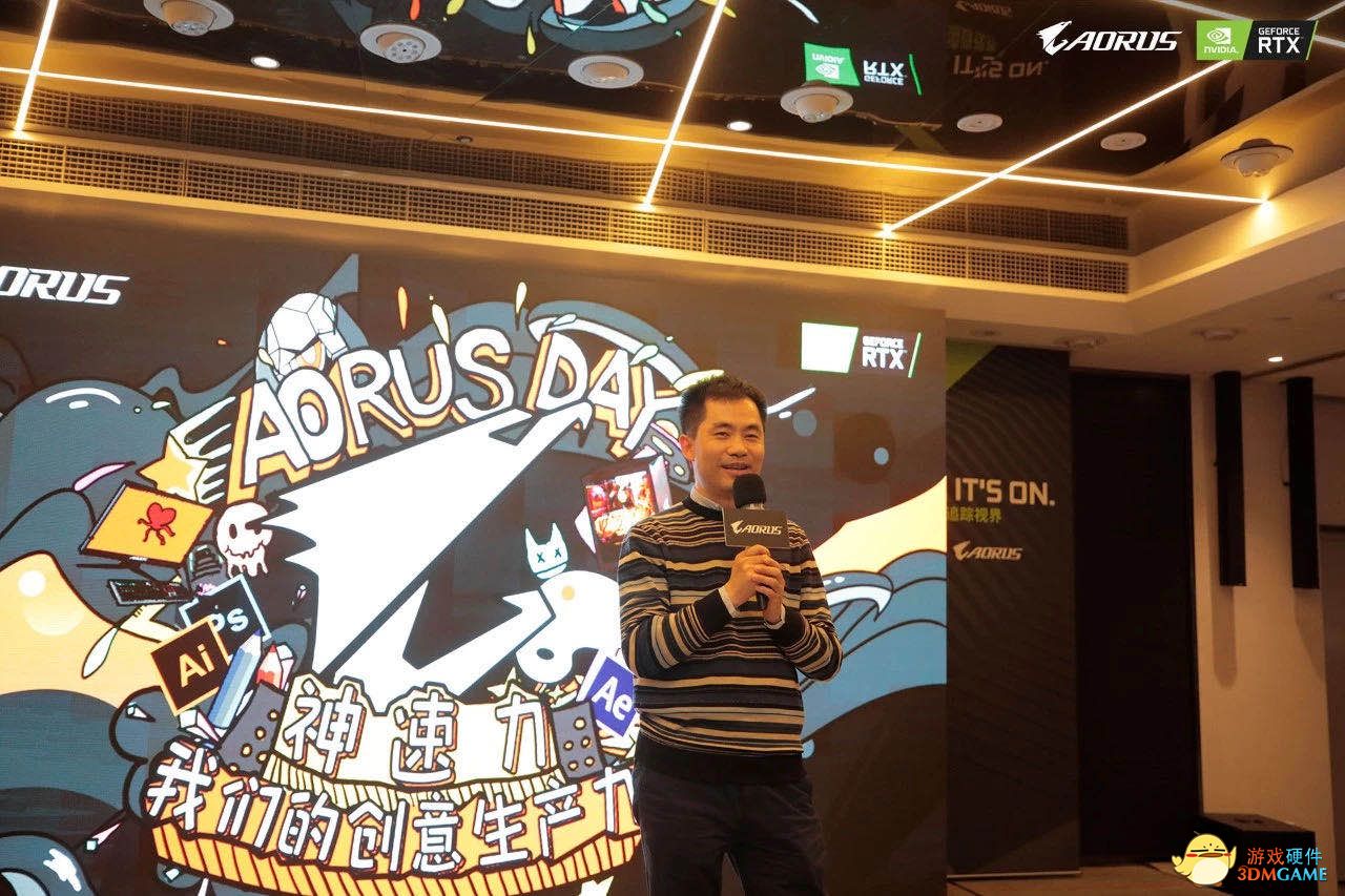 这一次活动邀请到了资深设计大咖NVIDIA Geforce Garage合作设计师吴明然先生,现场为大家分享了自己的创作经历。从平面设计时代到现在的互联网创作时代,创作灵感都需要有一套性能强劲的生产力工具来帮助你呈现出来。一幅优秀的作品并不是一蹴而就的,它需要经过反复打磨,反复推敲,不断改进,这一切都需要一套可靠的生产力工具。而技嘉AORUS全家桶搭配NVIDIA技术的支持绝对是设计师值得拥有的创意生产力平台。