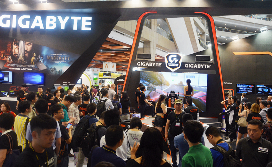 位于世贸的技嘉展台,气氛相当活跃