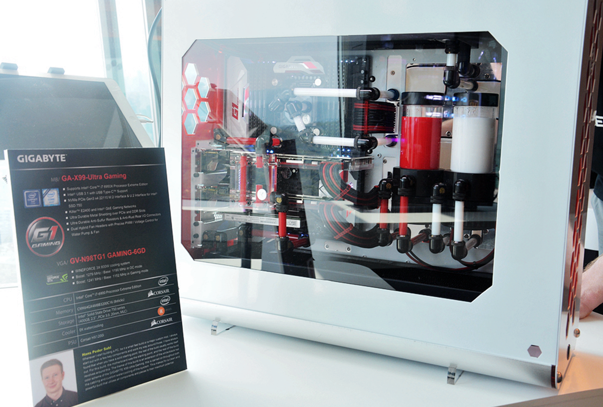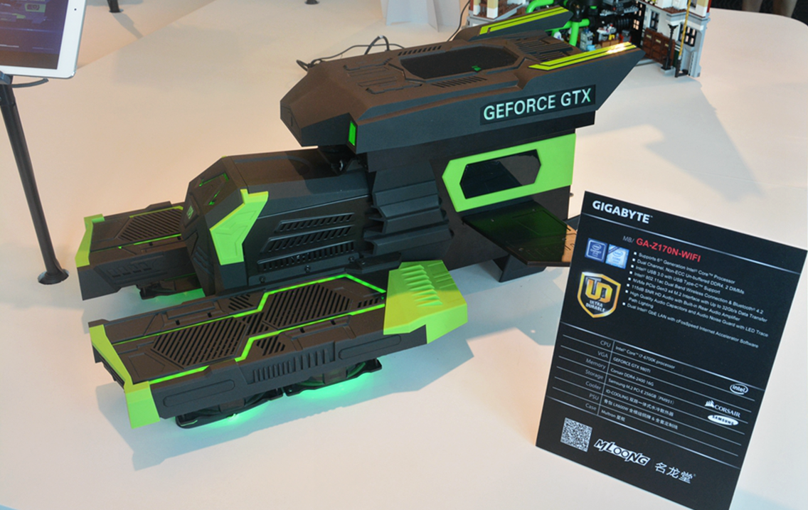 开展首日,技嘉展馆便吸引了众多参展人员驻足了解,现场MOD整机让观众大饱眼福,无论是创意还是性能均很罕见。此外,技嘉此次展出的主板新品加入的多项创新科技,未来感十足,其中包括X99-Designare EX、X99-Phoenix SLI、X99-Ultra Gaming、Z170X-Designare、Z170X-Ultra Gaming等9款旗舰型号,前不久在技嘉三十周年庆典发布会上曝光过一次,但在这里将是首次公布详细技术参数。此外,在展会现场,还准备了多台高端PC做产品演示,以及多台体验机供现场观众参与体验。