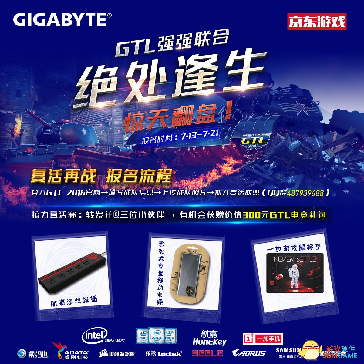报名阶段:关注技嘉金牌主板官方微博,@技嘉金牌主板转发复活赛相关微博并@3个好友,即可以参与抽奖,可获得价值300元的套装礼包,共计3份