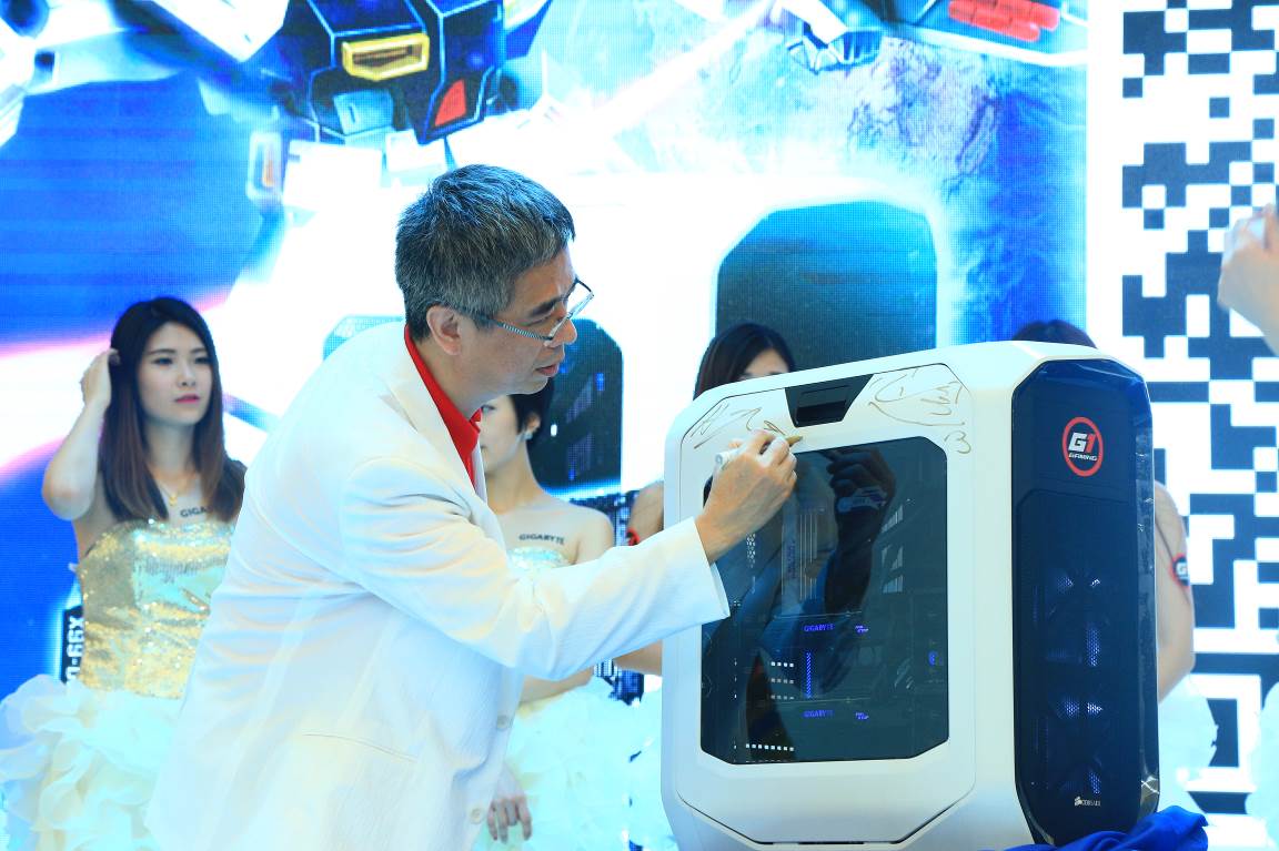经历了活动开场的“小惊喜”,万众期待的重头戏终于开场:知名电竞主播小悠与技嘉科技通路暨主板事业群 全球副总经理 高瀚宇先生一同发布了技嘉最强游戏主机“G1战神”——一款足以碾压市面上所有3D游戏大作的梦幻装备,配备了技嘉最新X99-Designare EX主板,并加持了Intel Extreme旗舰10核心i7-6950X处理器及双路GeForce GTX 1080顶级显卡。这款主机还将在天猫技嘉旗舰店限量发售,不知道哪位幸运儿会买到由小悠和技嘉高层签名的限量版主机呢?表示非常期待。