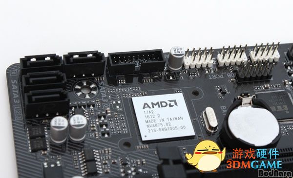 南桥芯片特写,拥有四个sata三代接口!