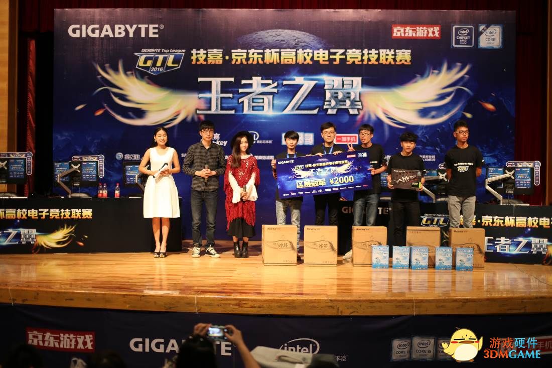 活动最后也是最为精彩,冠亚军战队纷纷上台领奖,丰厚的奖金奖品是对他们从校园海选赛、线上赛、线下决赛一路走来最好的褒奖。最后通过关注GTL官方微信上墙的互动抽取了价值6000元的电脑主机大奖。