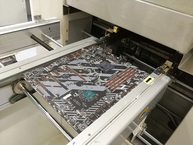 即将刷锡膏的PCB板,这只是生产主板的第一步。