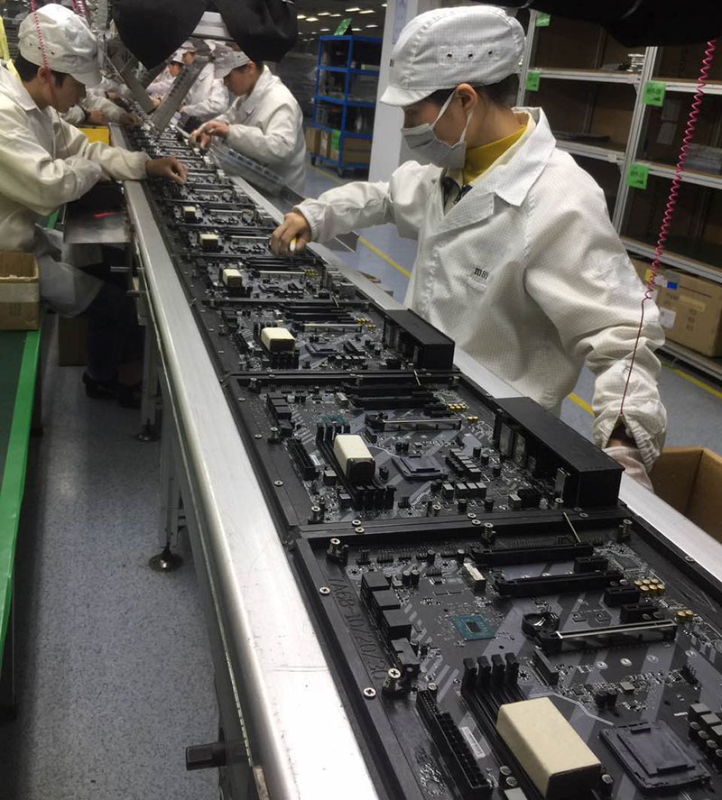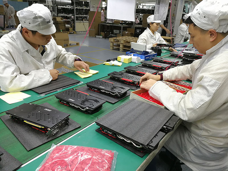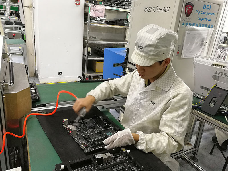 微星恩斯迈工厂位于深圳石岩在职员工达到了5600人以上,主板产能为2,100K每月,显卡产能为10,00K每月,此外还有服务器主板和消费类电子产品的生产。微星主板产线几乎全线机器生产,只有插件和功能检测等智能环节是由人工来操作的。每片主板的料键细节把控,性能检测到CPU针脚拍摄,每个环节都保证精益求精。微星恩斯迈工厂中的主板生产线,有一条专为定制级客户配备的高规格产线,其工业精度要远远高于市面上一切同类产品生产线。