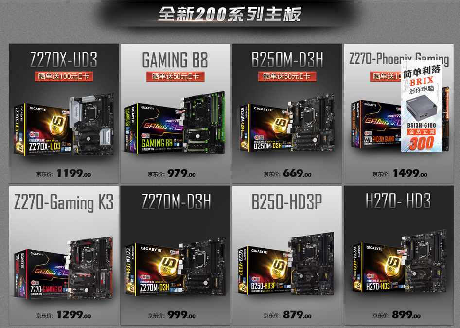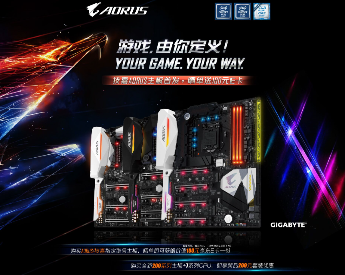 主板也应运而生。1月6日,技嘉AORUS电竞主板以及更多的200系列新品在技嘉京东旗舰店首发!1月6日至1月20日,购买AORUS/技嘉指定型号主板,晒单即可获赠价值100元京东E卡一份;购买全新200系列主板加7系列CPU,即享新品200元套装优惠!此外,购买指定型号主板并在会员网站成功注册后即可免费升级为技嘉铂金会员,尊享五年质保一年上门收送等多项增值服务。