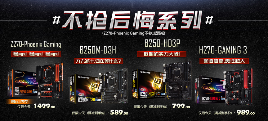 2017年度GDC(游戏开发者大会)即将召开,届时将有不少小伙伴日夜期待的游戏大作于此时发布,是时候更新一套游戏装备啦。2月21日,技嘉京东“CP有惠,买单无悔”超级品类日火热进行中!活动期间享满减优惠,全场每满99减10;购买指定技嘉主板搭配指定CPU最高立减200;购买指定技嘉主板立赠8G内存!赶紧戳下方链接,个性炫酷专属竞技装备,即刻拥有!