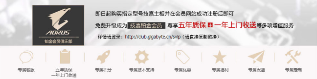 http://club.gigabyte.cn/svip)成功注册后,可免费升级成为技嘉铂金会员,享受5年质保+1年上门收送的优质贴心售后,尊享专属定制、专属技术服务、专属会员积分等多项额外增值服务!小编之前还用会员积分兑换了一条XPG的8G内存,亲测可用。