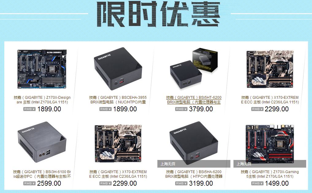 技嘉X170-EXTREME ECC 主板采用整流迷彩装甲设计,配备七彩调色LED呼吸灯带,板载创新3D音效芯片,搭载杀手游戏网卡+Intel双网卡设计,无论游戏办公都能胜任。追求精致生活的消费者可以了解一下BRIX超迷你主机。根据定位不同,性能也有所差异。BSi5HA-6200作为销量担当,搭载第六代酷睿i5处理器,支持4K高清播放及多屏显示输出,并可扩充内存条,性能强劲,重量不足2kg,购入仅需3199,足够畅玩主流网络游戏,办公影音更是毫无压力。