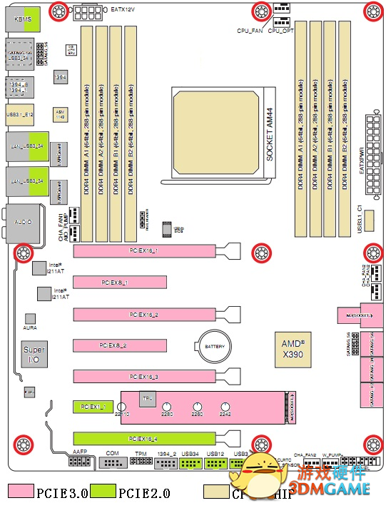 CPU插槽的名称标注为AM44,看起来明显比现在的AM4大一些,可能有些额外增强。