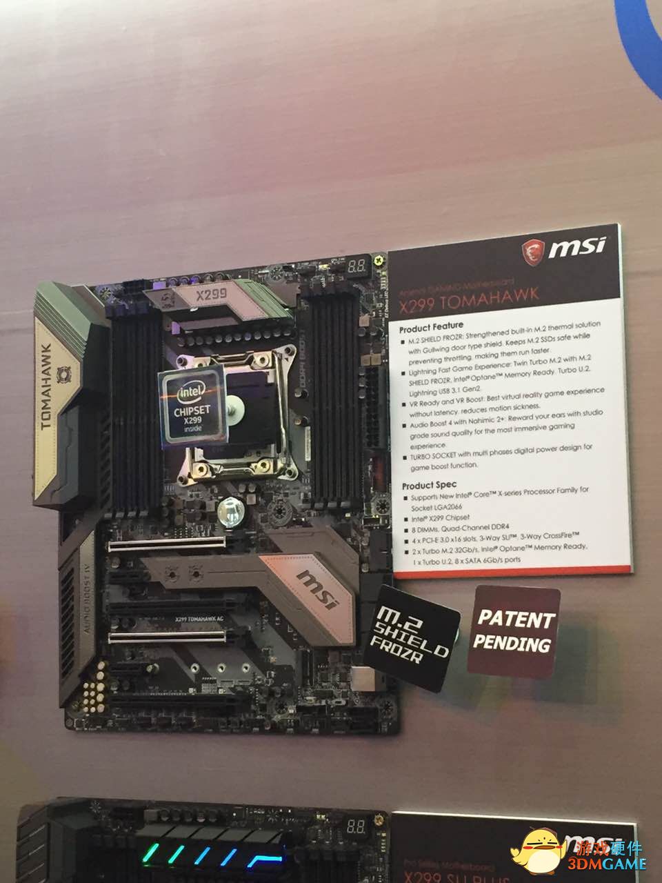 在台北电脑展上,微星正式展出了旗下的X299主板,包括X299 Tomahawk、SLI Plus、Xpower Gaming AC、Gaming M7 ACK、GAMING PRO CARBON.