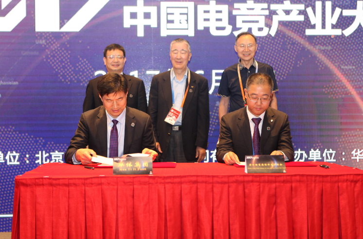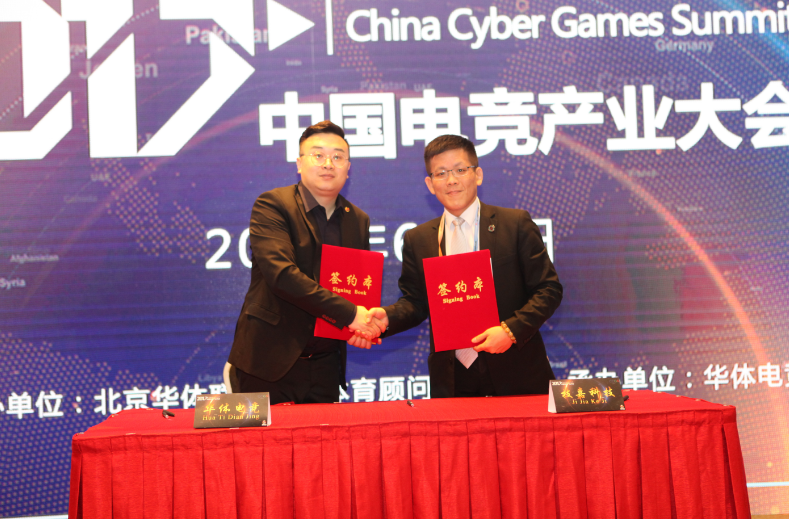 技嘉科技通路暨主板事业群中国区总经理蓝绍文先生与华体电竞(北京)体育文化有限公司总经理栗坦先生进行签约