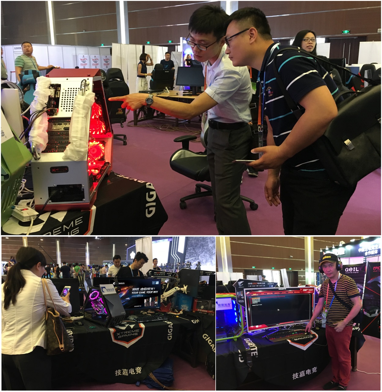 此外,现场的线下展示区也是一道靓丽的风景线,展区展品由技嘉科技北京代理商朝朝旭海提供,玩家不仅可以欣赏到极具艺术性的MOD主机,还能体验到最新最好玩的竞技装备,现场更是吸引不同地域不同年龄层人群围观体验,人头攒动好不热闹!