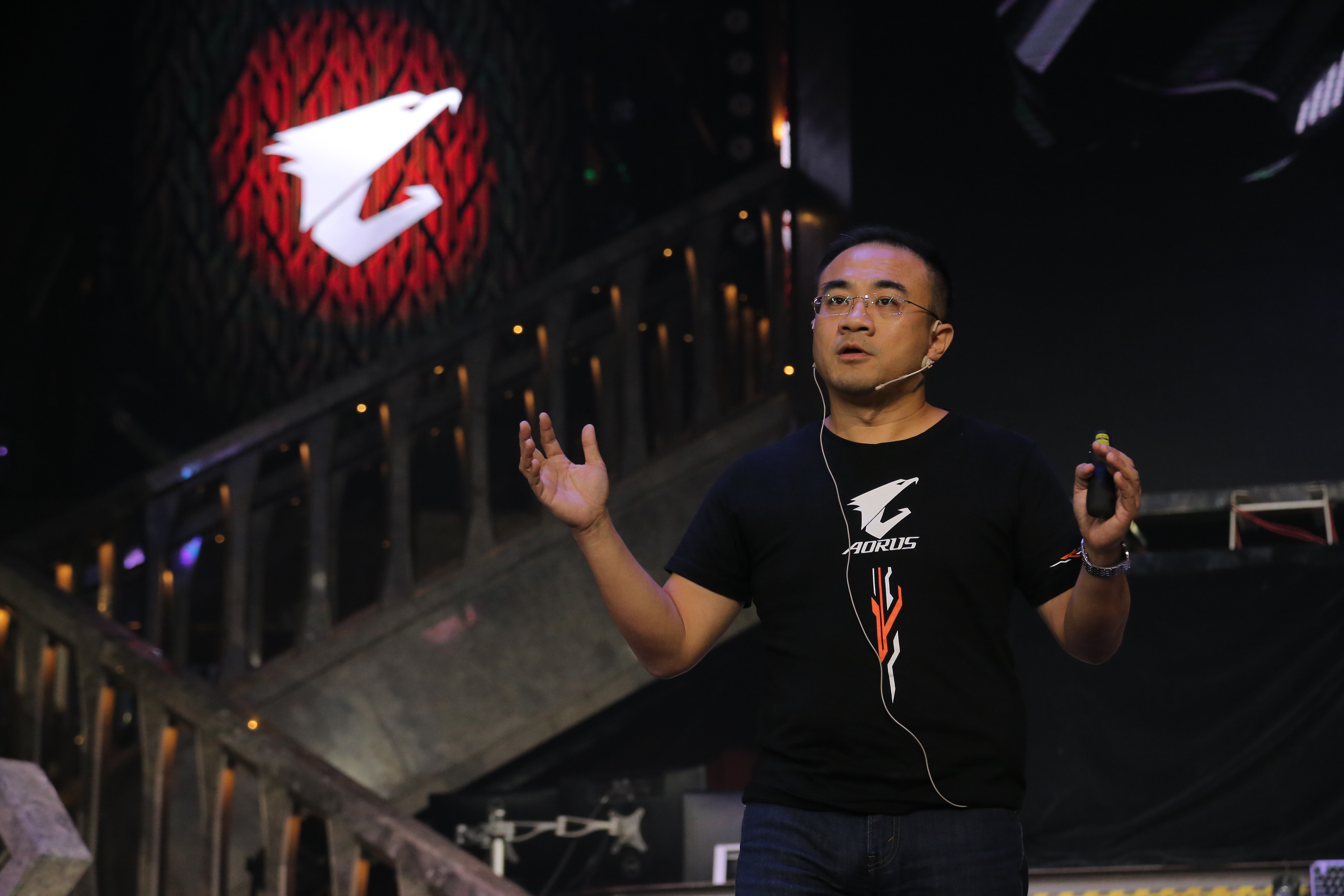 一段品牌介绍视频结束后,技嘉科技AORUS全球品牌行销副总林英宇上台,与大家分享了技嘉是如何汇聚三十年硬件研发技术,厚积薄发,以AORUS的品牌为新起点,力求全力提升职业电竞以及高端玩家游戏体验的。