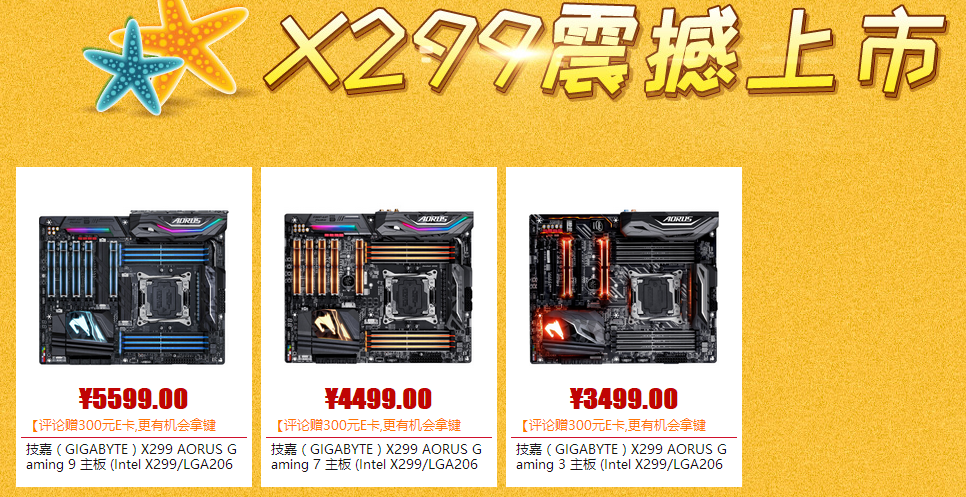 炎炎夏日怎能没有一套专属的竞技装备?马上参与活动,购技嘉主板与三星SSD即享满减优惠,购X299主板评论晒单还赠京东E卡,第一时间体验X299平台,轻松打造竞技利器!
