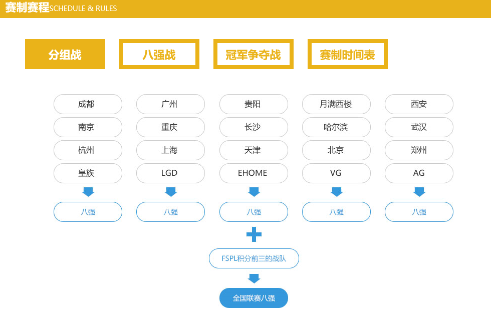 2017《街头篮球》SFSA总决赛将完全颠覆之前的规则,5支FSPL职业战队将分别分在不同的小组,每个小组只有一个队伍出线,比赛将十分残酷。地区赛以及外卡赛冠军们将遇到FSPL职业战队的挑战,地区赛冠军们也都跃跃欲试,想要将FSPL职业战队挑落下马夺得出线名额。当小组赛成功出线进入八强的五支战队,还将在8月27日与EP、炎轩以及Onestar这3支职业战队一较高低!
