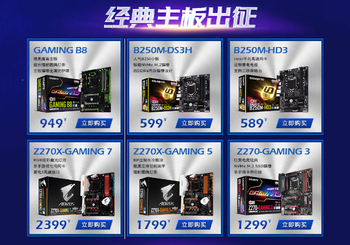 很多人想要一劳永逸,简单说就是花钱弄一套中高端配置,理论上3至4年不用更换任何配件。那么对于这些玩家来说,整机是个很好的选择。本次活动给大家推荐了四个不同定位和价格的游戏主机,“绿黑信仰 品味出众”整机搭载了技嘉Z270X-Gaming K5主板、GTX1080显卡和i7-7700K处理器,性能颜值兼备,追求卓越性能体验的用户可以考虑。对于广大普通学生玩家来说,“均衡搭配 突破效能”整机非常值得购买,搭载技嘉B250小板、GTX 1050Ti显卡和i5-7500处理器,轻松胜任各类主流网游和学习应用。