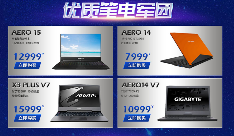 在这次的开学季优惠活动中,技嘉的笔记本也赫然在列,现在购买还赠送笔记本双肩包和精密锁边鼠标垫。技嘉AORUS X3 PLUS V7作为一款旗舰级产品,流体雕塑质感设计,预装Win 10系统,搭载第七代英特尔酷睿 I7-7820HK处理器及GTX 1060桌面级独显,自动调整背光键盘,广视角防眩光雾面液晶显示屏,运行如飞,性能足以比拟桌面台式机。“颜值控”玩家可以考虑Aero15/14,不仅拥有超高的颜值,同样也是实力派!