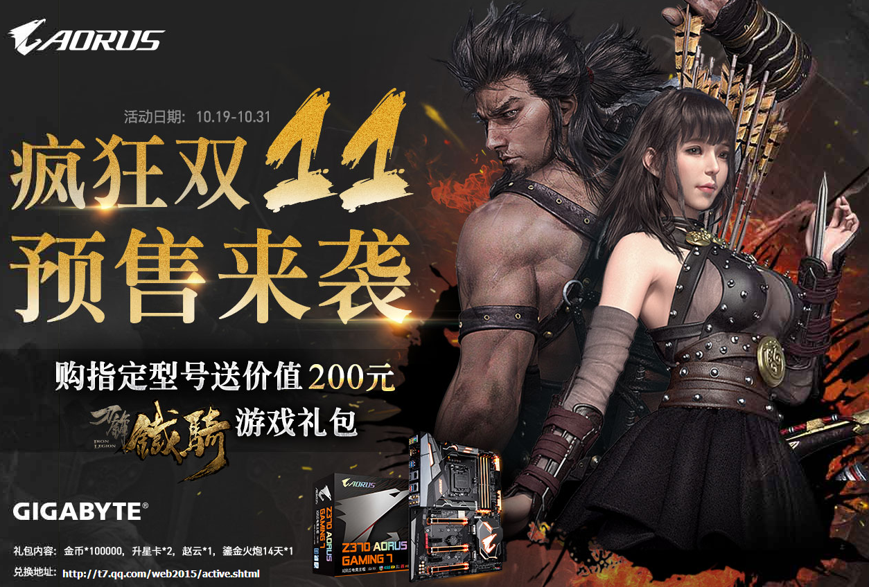 一年一度的双·11购物节又快到了,你是否开始担心买不到好物?开始恐惧双·11的龟速快递呢?10月19日至10月31日,技嘉天猫品牌站疯狂双·11预售活动火热来袭!活动期间,购指定主板送价值200元的《刀锋铁骑》游戏礼包,部分型号(如Z370 AORUS Gaming 5)还可获赠水冷散热;更有八代六核游戏主机钜惠预售!赶紧戳下方链接,技嘉主板、板U套装及电竞笔电等各类商品任你挑选,专属竞技装备轻松拥有。